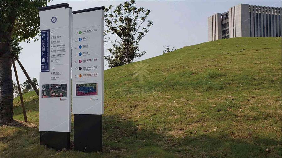安徽理工大学 安徽理工大学导视系统设计制作安装。易美标识在安徽理工大学于2017年搬迁新校区之际为其提供了学校整体导视系统规划设计制作服务。它是集导引指示功能与校园文化展示于一体的综合性、个性化的系统工程。从构建校园文化入手,将大学文化根植于中国传统教育文化的土壤,表达了“志存高远、追求卓越”的校园文化诉求,同时表现青青校园的人文气息。 ANHUI UNIVERSITY OF SCIENCE& TECHNOLOGY 安徽理工大学导视系统设计制作安装项目背景 — 安徽理工大学创建于1945年,安徽省和应急管理部共建高校,是一所历史悠久、办学特色鲜明的省属重点大学,综合实力位居全省高校前列。新校区占地面积3129亩,总建筑面积近100万平方米,为目前安徽省高校单体面积最大的大学校园。校区总体规划分为核心教学区、东组团、西组团、配套生活区、行政教辅区。 安徽理工大学简介 — 校园标识导视系统的主要作用在于“导视功能”,以一种最佳的方式来规划人们在公共空间的路径导向,使新人能够通过不问路或少问路,无障碍到达目的地。校园的人文精神,不仅体现在雕塑和景观,更体现为校园环境对人的关怀与尊重。 校园标识导视系统的价值还在于强调系统与环境的和谐、设计层面的美学以及体现区域与空间的文化属性与人文特性。它是让人与空间产生双向对话和交流的平台。 一、完善明确的校园标识引导功能 1.建立阶层式动静分配结合的校园标识导向系统,保证引导信息的一致性与连续性。动态标识帮助大众对整体空间有把握、定位行动路线。静态标识方便确认目标点及其文化信息解读。 2.合理的布点与定位,保证指示信息的疏密平衡。根据以上原则,易美标识规划设计了安徽理工大学导视标识系统,其中包括:校园户外动态标识1-4级,静态标识(形象石、路牌、建筑名称牌、景观牌、提示牌等)。室内动态标识1-3级,静态标识(名称牌、设备牌、服务牌、提示牌等)。 3.标识的线上数字系统支持,起到导视辅助功能和文化宣传功能的双重作用。 二、体现安徽理工大学校园文化精神特色 1.学校区域与建筑采取文化命名,体现安徽的地域文化、历史文化的特色,体现浓郁的人文文化、社会文化的气质。 3.校园区域名称采用古典线装书设计风格,体现浓郁的校园书卷气质。 安徽理工大学导视系统设计制作安装解决方案 — |